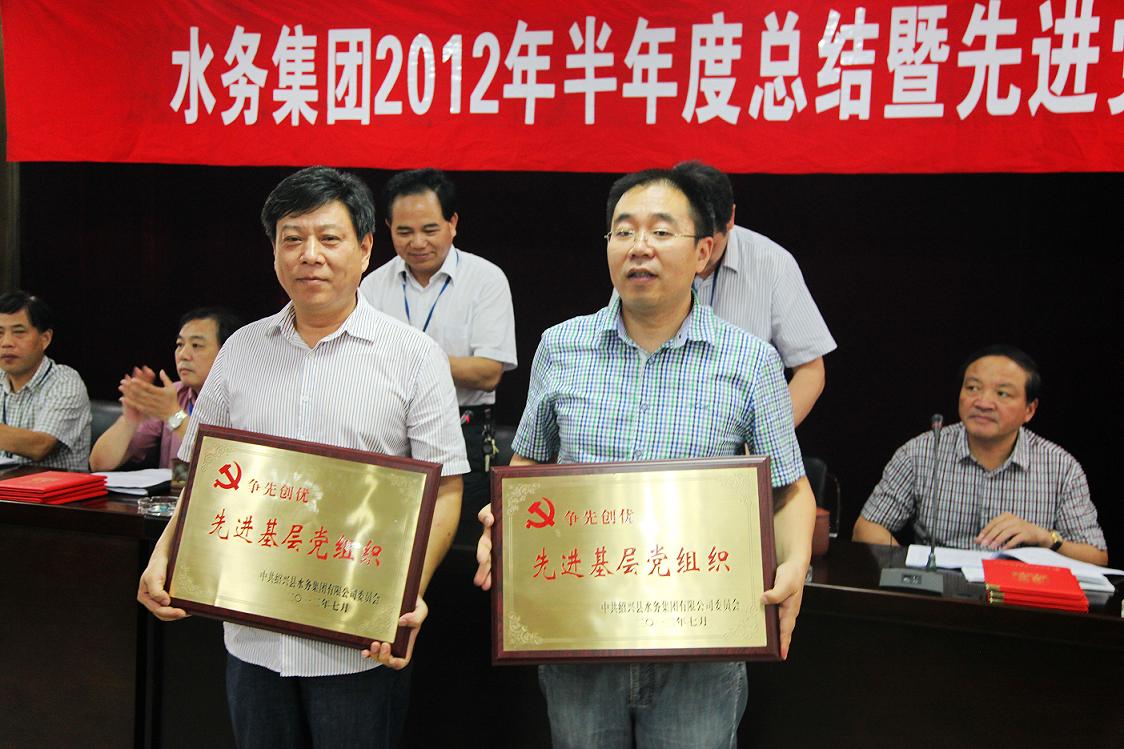 圖為供水公司黨總支、水處理公司黨總支代表接受表彰